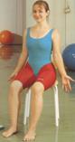 „Die Mütze ziehen“: Setzen Sie sich aufrecht hin. Neigen Sie Ihren Kopf nach rechts und fixieren Sie ihn mit der rechten Hand. Den linken Arm ziehen Sie in Richtung Boden bis Sie die Dehnung in der Schulter spüren. Mindestens 10 Sek halten, dann wieder entspannen. 2 mal pro Seite