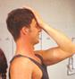 Seitenstütze: Setzen Sie sich aufrecht hin. Eine Hand an die Schläfe drücken und Dann wieder locker lassen und Seite wechseln. Wiederholung 1 bis 3 mal