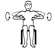 drehen, Variante: Arme seitwärts halten und kleine Kreise vorwärts und rückwärts beschreiben – lockern. Ziel: Mobilisierung des Schultergürtels, Stabilisierung der Nacken- und Schultermuskulatur. |