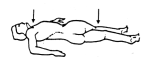 Wirbelsäule gegen den Boden pressen. Hierbei erfühlen, wie sich die Spannung durch den Körper