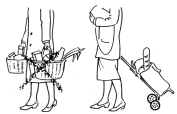 Tragen von Lasten: Vermeiden Sie es, schwere Gegenstände zu tragen. Lassen Sie sich die Einkaufwaren nach Hause schicken oder benutzen Sie Hilfen in Form von rollbaren Transportmitteln (Einkaufswagen, Kofferkuli, etc.) |