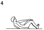 3. Rückenlage: Grundspannung aufbauen – Kopf und Schulter leicht anheben. Die Arme angewinkelt anheben und gegen einen gedachten Widerstand drücken. Übungserweiterung: Beine etwas anziehen und mit beiden Händen gleichmäßig gegen die Oberschenkel drücken. Ziel: Kräftigung der geraden Bauchmuskeln. |