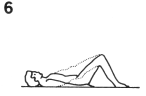 6. Rückenlage: Beine sind leicht angewinkelt, die Füße stehen etwa schulterbreit flach auf dem Boden. Langsam die Hüfte anheben, so dass die Wirbelsäule Stück für Stück vom Boden angehoben wird. Bauch- und Gesäßmuskulatur jetzt so anspannen, dass der Rumpf eine Linie ergibt. Ziel: Kräftigung der Rumpfmuskulatur, Aufbau einer Körperspannung |