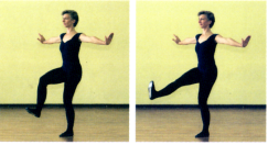 Fit 4 Balance Bei leicht gebeugtem Standbein, den anderen Oberschenkel in die Waagrechte heben und den Unterschenkel vorschwingen. Gleichzeitig helfen die gestreckten Arme beim Balancehalten, die Hände werden im Wechsel auf- und ab bewegt.